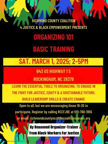 The Richmond County Coalition for Justice and Black Empowerment (RCCFJBE) is dedicated to addressing systemic injustices and environmental racism fueled by industrial practices in our communities.