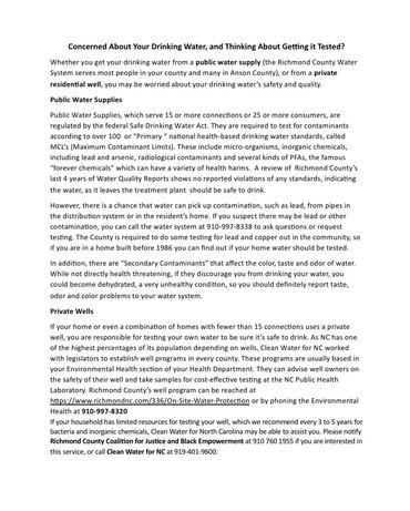 The Richmond County Coalition for Justice and Black Empowerment (RCCFJBE) adressing systemic injustice and environmental racism impacting Black communities. We work to secure clean drinking water, protect Black workers’ rights, and end disproportionate harm caused by industrial practices. Through grassroots organizing and advocacy, we elevate community voices and push for a healthier, more equitable future.